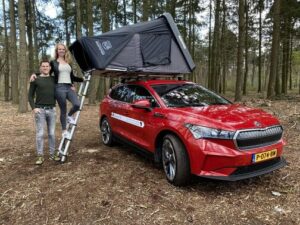 Initially, our idea was to go with an electric jeep but as these are very expensive, we started looking into more affordable cars that fit more people’s budgets. We ended up buying a regular electric car, which we equipped with a rooftop tent. We also removed the back seats and are currently researching how to fit both our luggage and the solar panels in the car.